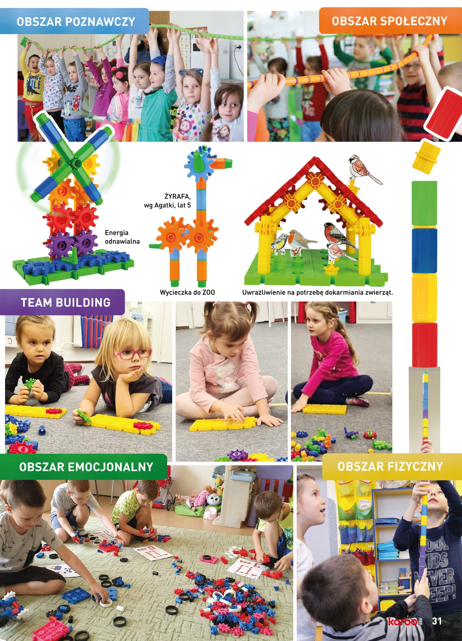 - Uczy kreatywności, współpracy i rozwija kompetencje społeczne oraz emocjonalne.